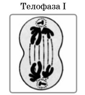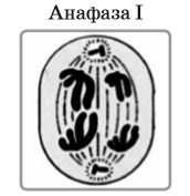 Гомологічні хромосоми відділяються одна від одної і рухаються до протилежних полюсів клітини. Центромери окремих хромосом не розділяються, і кожна хромосома складається з двох хроматид. Біля кожного з полюсів клітини збирається половинний (гаплоїдний) набір хромосом.