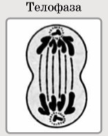 Відбувається деспіралізація хромосом, навколо скупчень хроматид утворюється ядерна оболонка, з’являються ядерця; дочірні ядра набувають вигляду інтерфазних. Цитоплазма материнської клітини ділиться. Утворюються дві дочірні клітини 2n2c