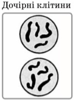 Мітоз — поділ, який супроводжується спіралізацією хромосом та утворенням апарату, який забезпечує рівномірний розподіл спадкового матеріалу материнської клітини між двома дочірніми.
